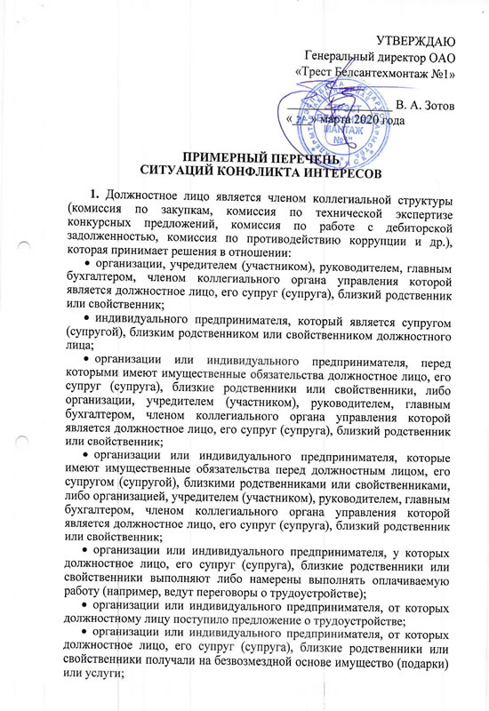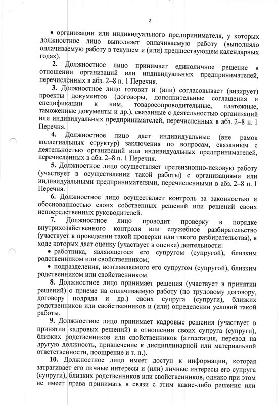 » Перечень конфликта интересов